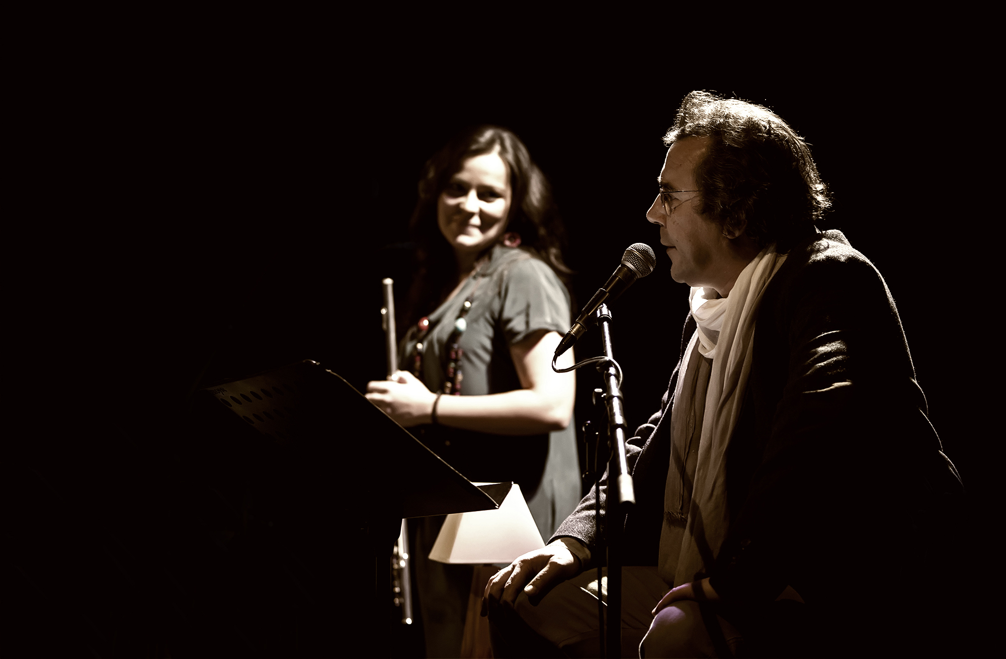 José Rui Martins e Luísa Vieira partilham o palco num desafio artístico que explora a musicalidade da palavra dita, cantada e teatralizada, voando em múltiplas geografias.
