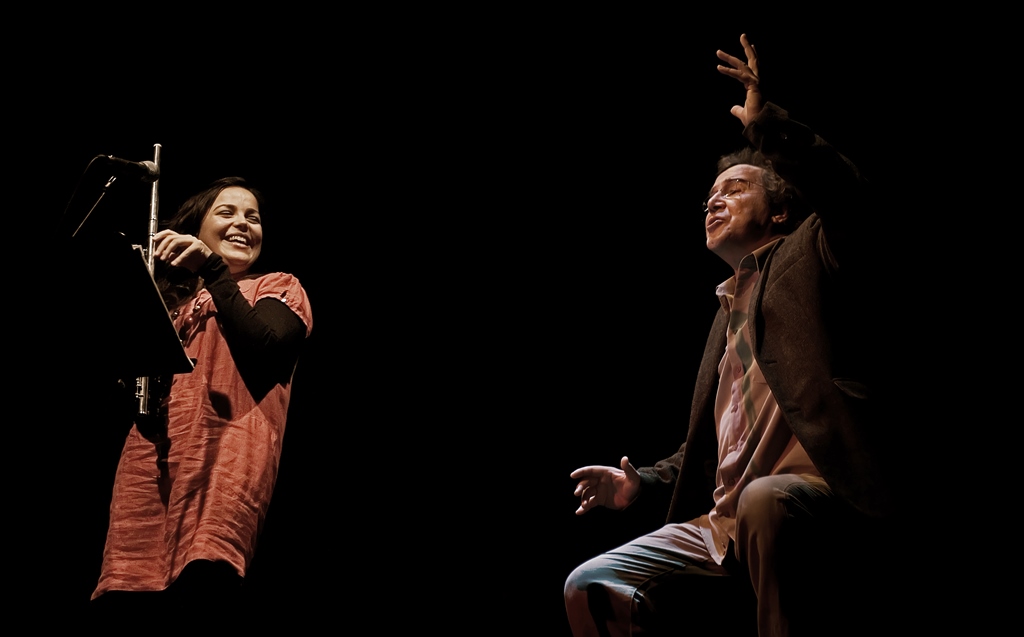 José Rui Martins e Luísa Vieira partilham o palco num exercício de comunicação, explorando a musicalidade da palavra e a simplicidade de dar voz a seduções emotivas.