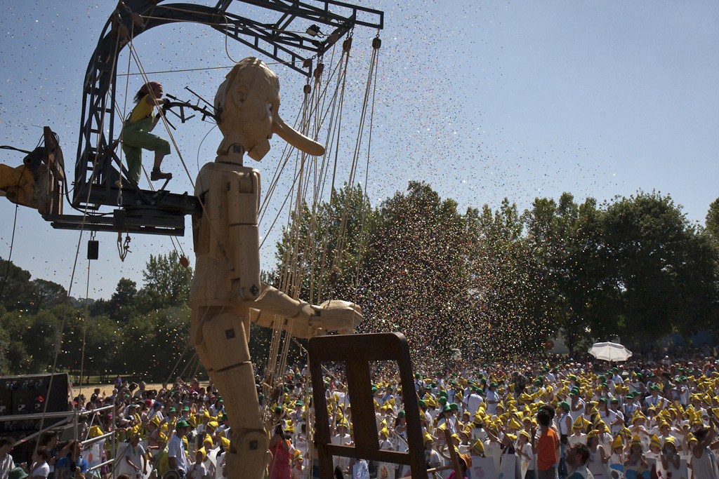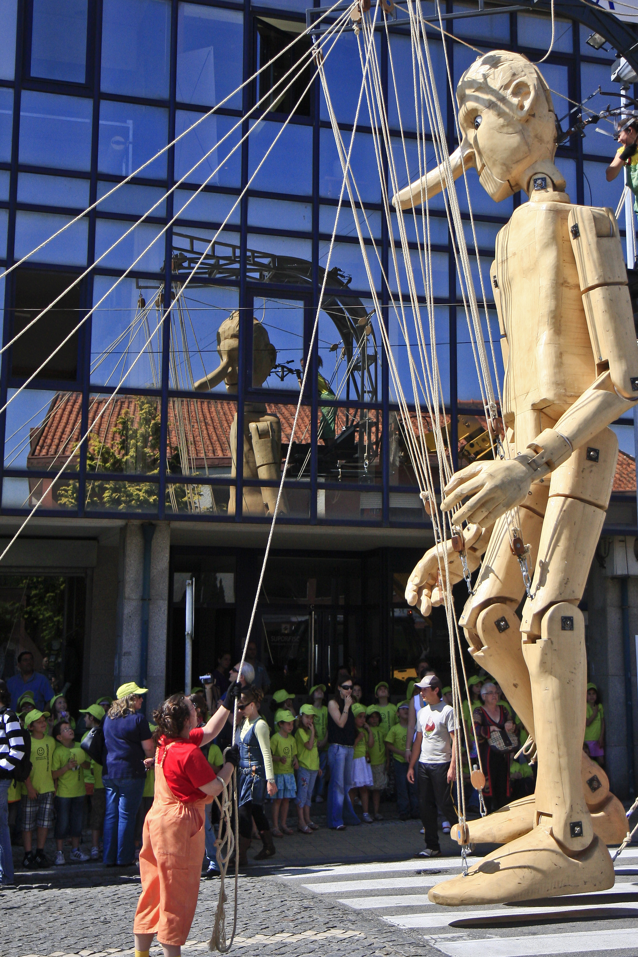 Depois de agigantar dois brinquedos tradicionais de madeira (o ciclista e o passarinho), o TRIGO LIMPO teatro ACERT apresenta outra criação, em co-produção com o Centro de Criação para o Teatro e Artes de Rua/Festival Imaginarius, de Santa Maria da Feira. Trata-se de um engenho cénico de madeira, com sete metros de altura, centrado na figura do Pinóquio.