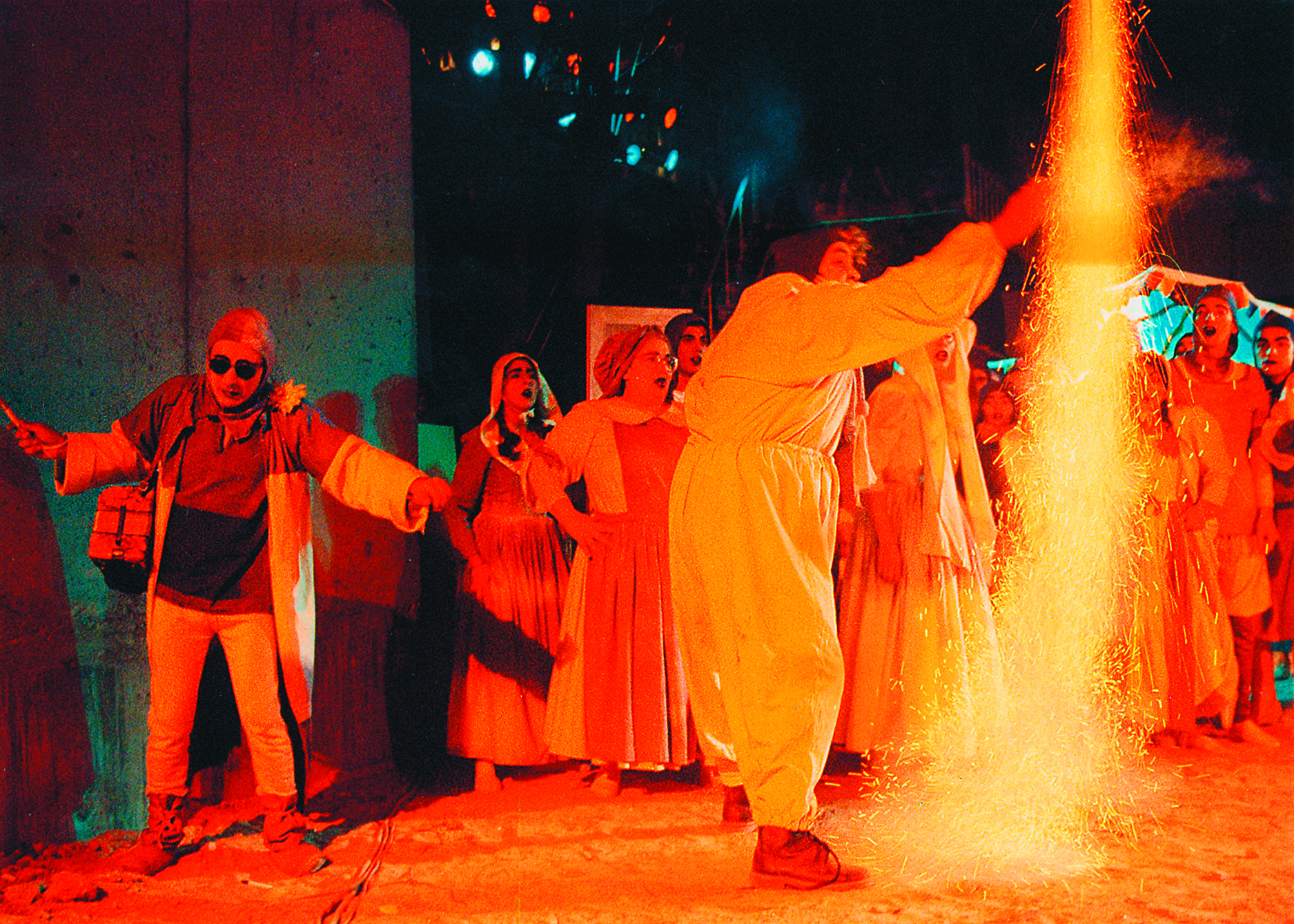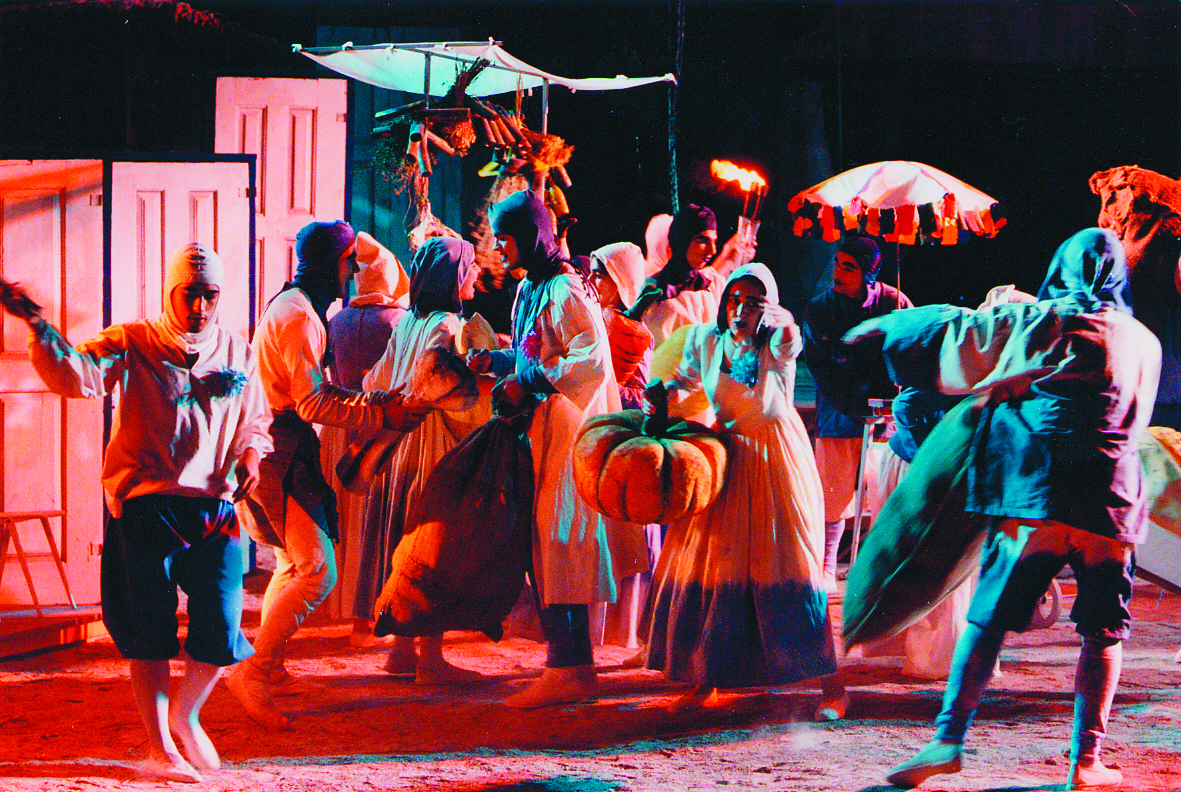 Nesta produção, o estudo de implantação cenográfica revelava-se um elemento fundamental, em que se procurava que o público mantivesse sensações de forte impacto visual, e que a poética musical e a relação dos actores com as diferentes zonas de representação salientassem o sentido fantástico do texto.