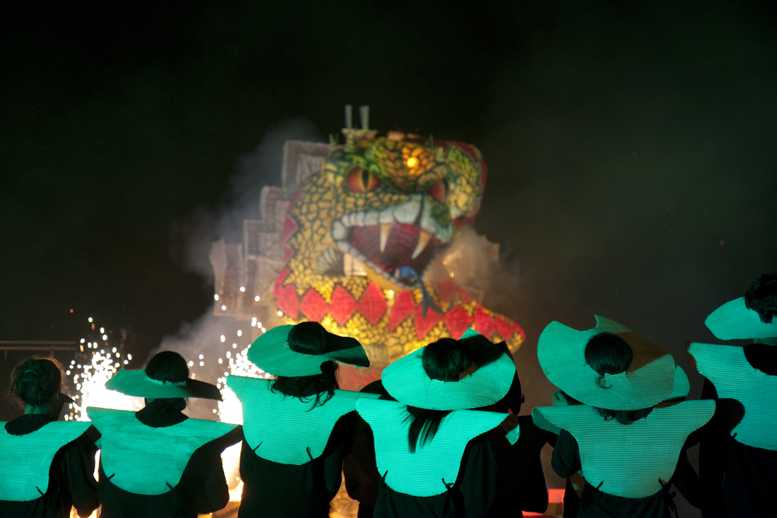 Actores, músicos, dançarinos, pirotécnicos, técnicos e escultores erguem o espectáculo nos bastidores. Nas diferentes áreas artísticas, grupos de trabalho constroem um edifício que, embora arda fisicamente, perdura na memória de quem actua e assiste.