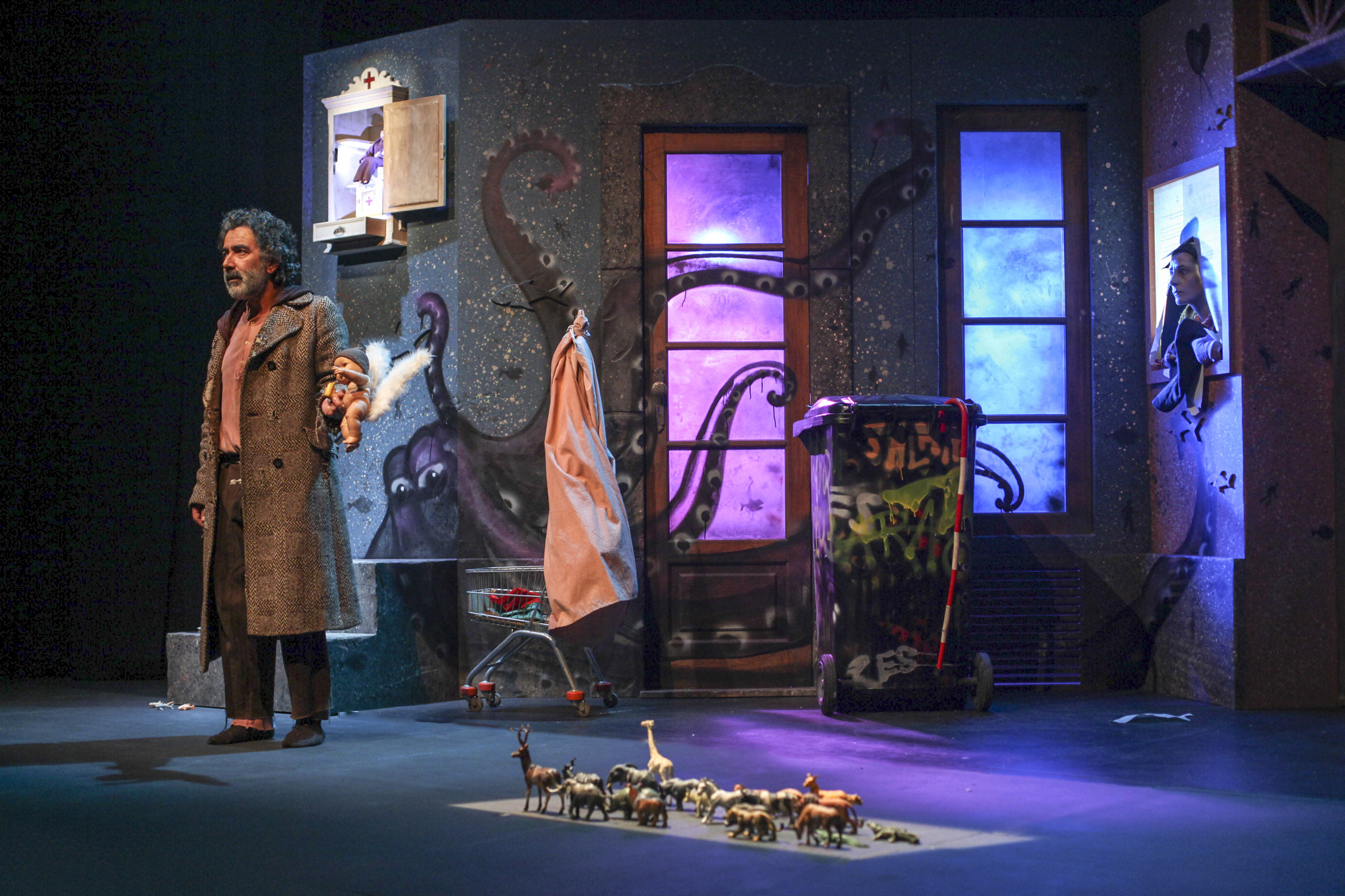 O casal acorda frente ao público e paralelamente ao ritual diário, mínimo no caso deles, vai proferindo as palavras do Sermão, como se da sua verdade se tratasse. De exemplo em exemplo desferem a sua raiva e encontram as razões da sua miséria. Ironizam sobre a sua situação através da situação actual de toda a humanidade, perdão, através do louvor das virtudes e da repreensão dos vícios, não dos homens mas dos peixes…