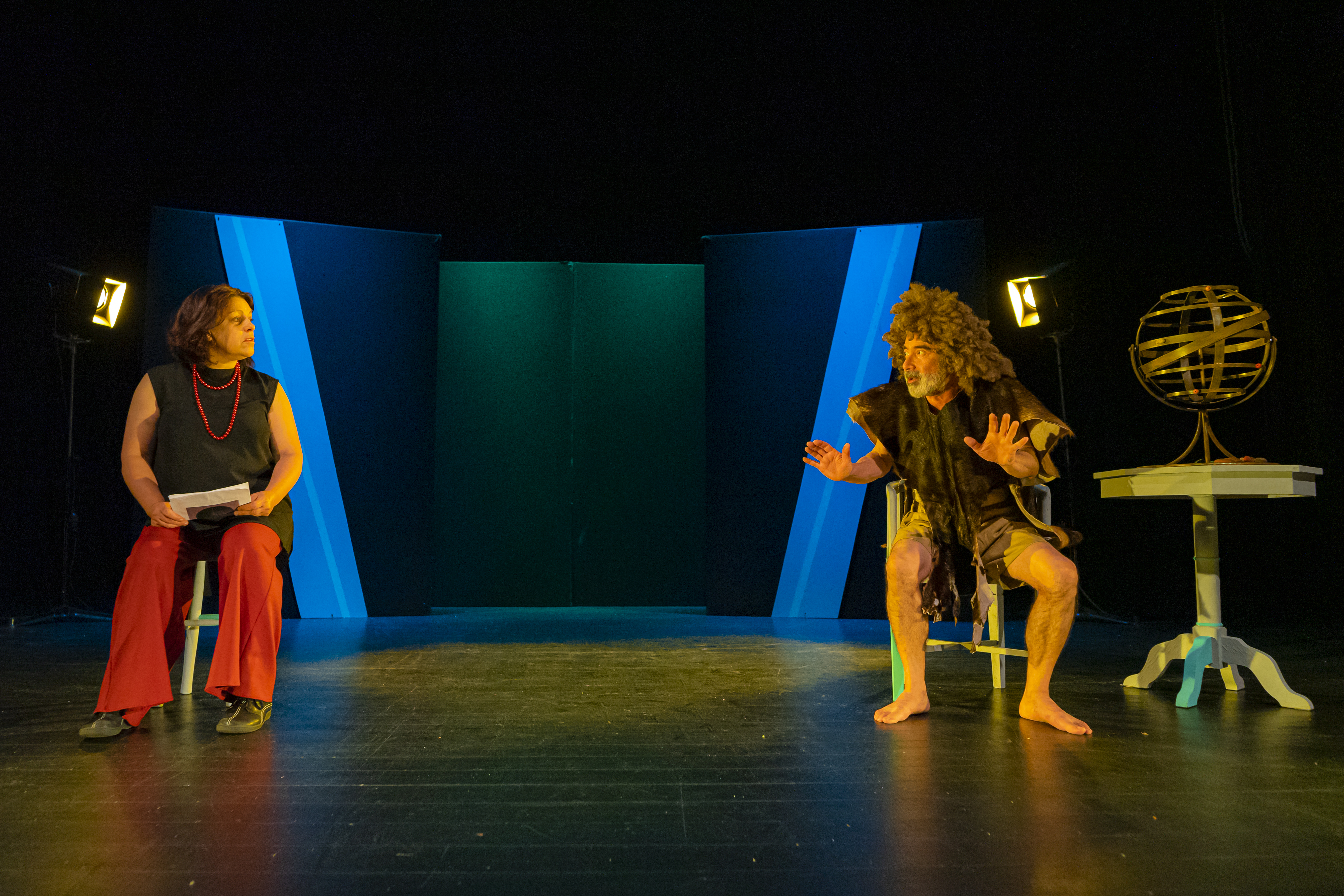 No princípio era a Terra e o Universo a rodar à sua volta. Muitos estudos e heresias depois, Galileu Galilei veio comprovar, no século XVII, que não éramos o centro de nada: a Terra anda à volta do sol, como tantos corpos celestes andam à volta de alguma coisa, num infinito impossível de apreender e onde a ideia de centro bem pode enfiar-se num buraco negro... No palco, três atores e muitas personagens, uma narrativa que ecoa as discussões televisivas de tantos horários nobres a partir de textos de vários autores, por exemplo Ricardo Araújo Pereira, entre outros. Terra faz desfilar em palco as muitas discussões sobre o planeta que habitamos, da descoberta de Galileu à alucinação dos terraplanistas, colocando a ciência e a conspiração igualmente equipadas de argumentos prontos a esgrimir. A evolução das espécies, a física dos buracos negros, os primeiros seres humanos ou os recursos finitos do planeta e o modo como os usamos e abusamos, tudo isso faz parte deste espetáculo. Rimos, porque o humor é um modo de pensar e um dos mais sérios e eficazes. Rimos e continuamos a reflectir sobre quem somos e o que vamos fazendo, sobre quem queremos ser e o que poderíamos fazer de modo diferente.