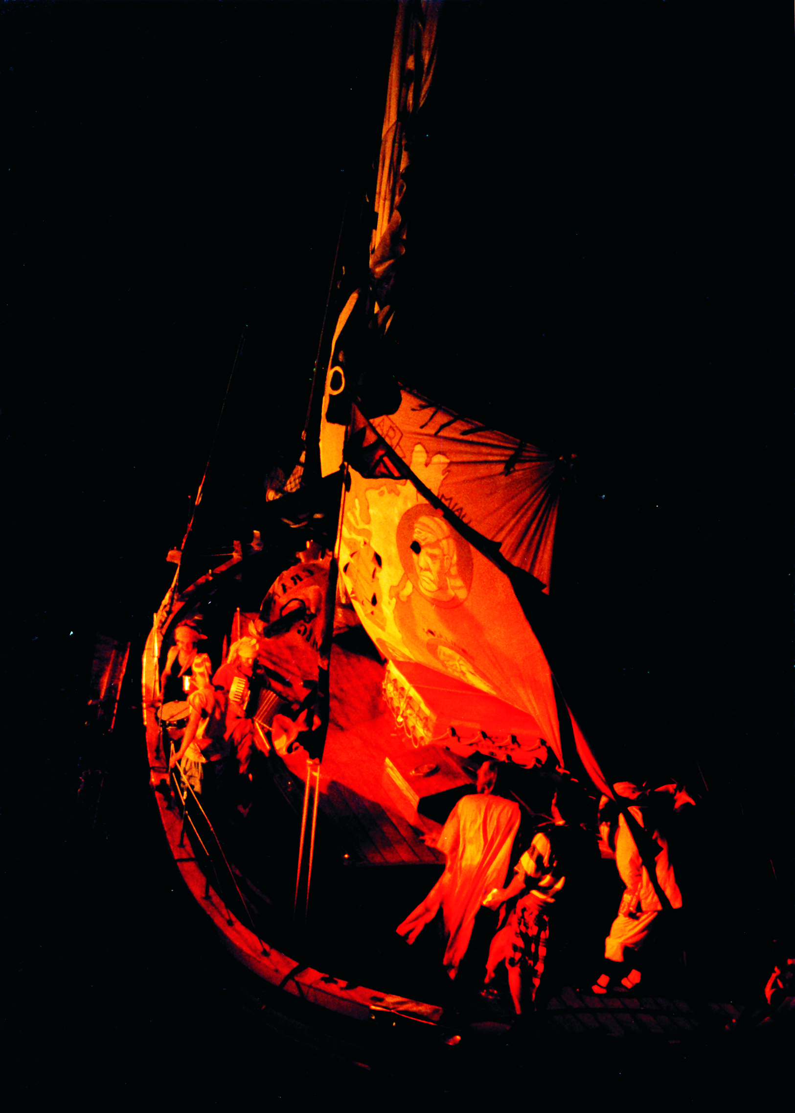 Mobilidade máxima como táctica de desaparecimento: a desaparição do artista-estrela, a reivindicação do artista anónimo face ao espectador anónimo, como forma de eliminar as barreiras entre o artista e o utilizador da arte. O barco traz esta mobilidade ao espectáculo, que não tem que ser anunciado para uma hora e lugar determinados, antes pode ser apresentado sem aviso prévio, e conta, sem mais, sedutoras mentiras que se tornam realidade.