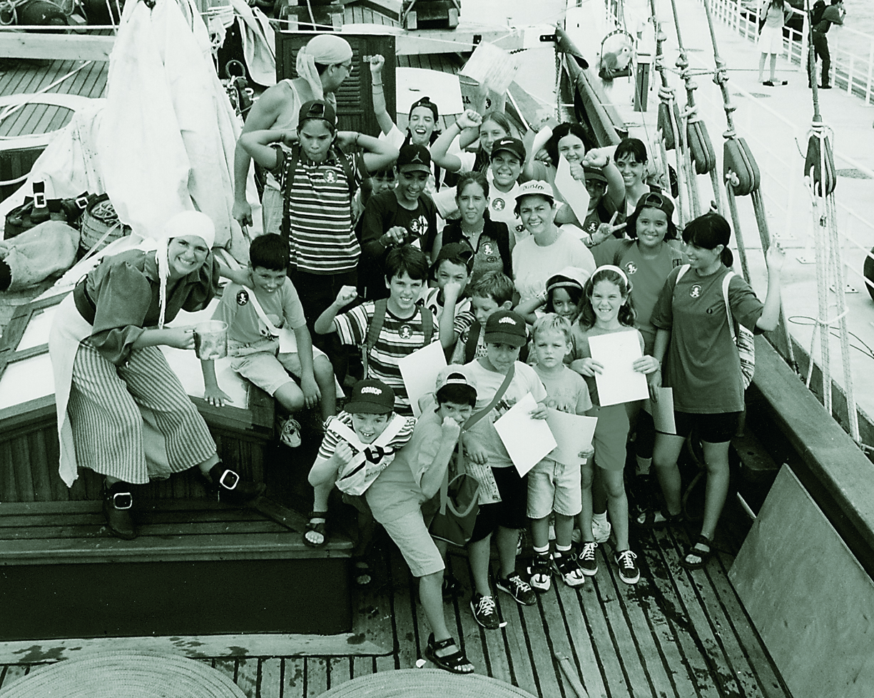 A primeira acção consiste numa visita ao barco pirata, para um primeiro contacto com a embarcação e em que serão distribuídos vários adereços tipicamente piratas. Depois de iniciados os aspirantes a piratas transformam-se em legítimos membros da tripulação, provando a sua fidelidade através da entoação de um hino pirata.