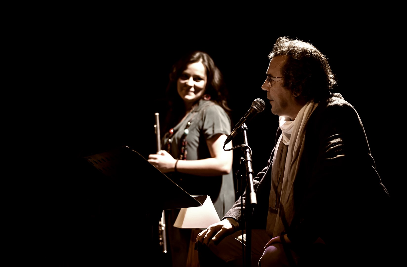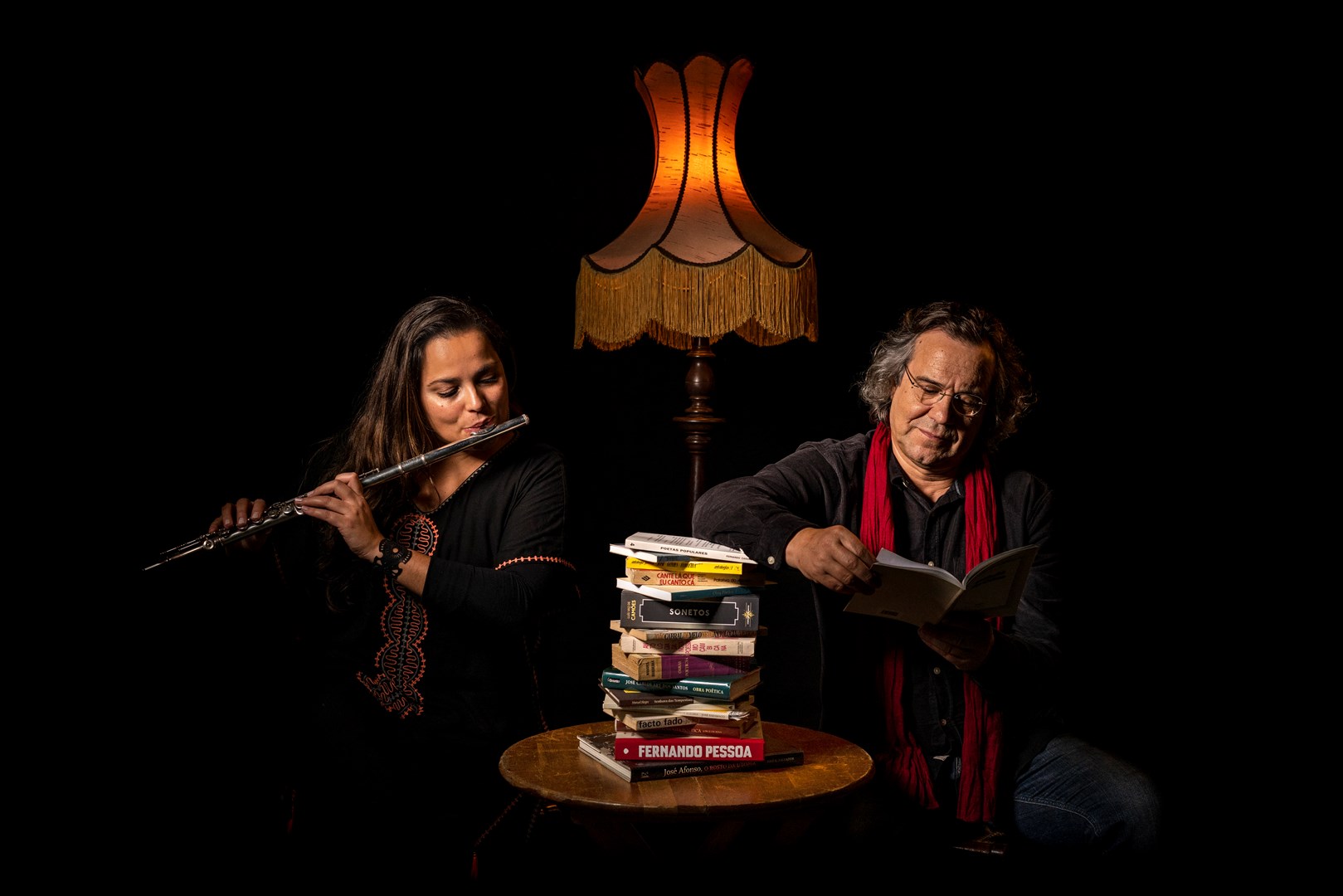 José Rui Martins e Luísa Vieira partilham o palco num desafio artístico que explora a musicalidade da palavra dita, cantada e teatralizada, voando em múltiplas geografias.