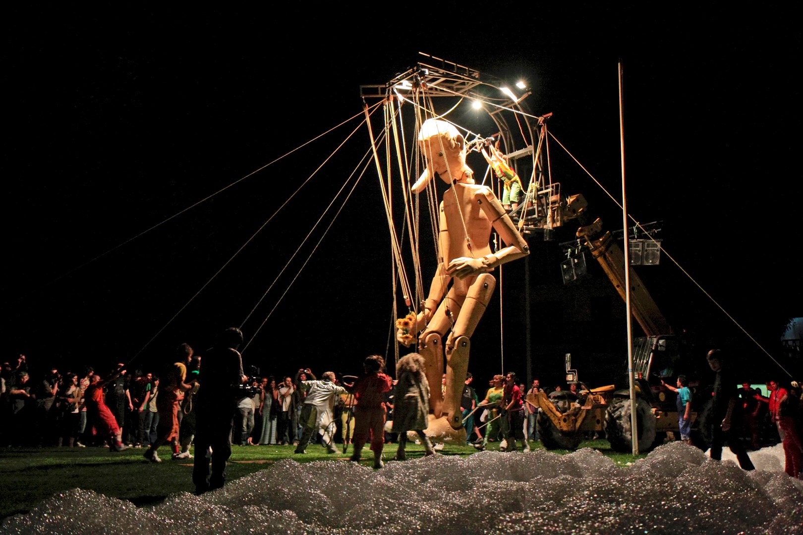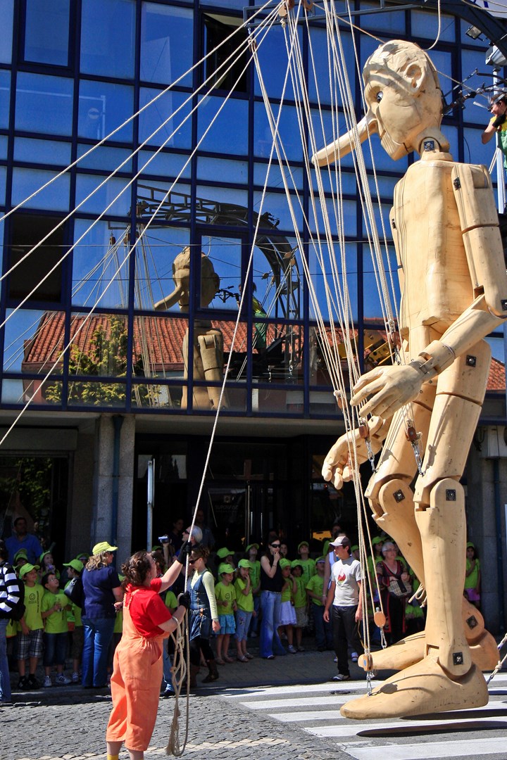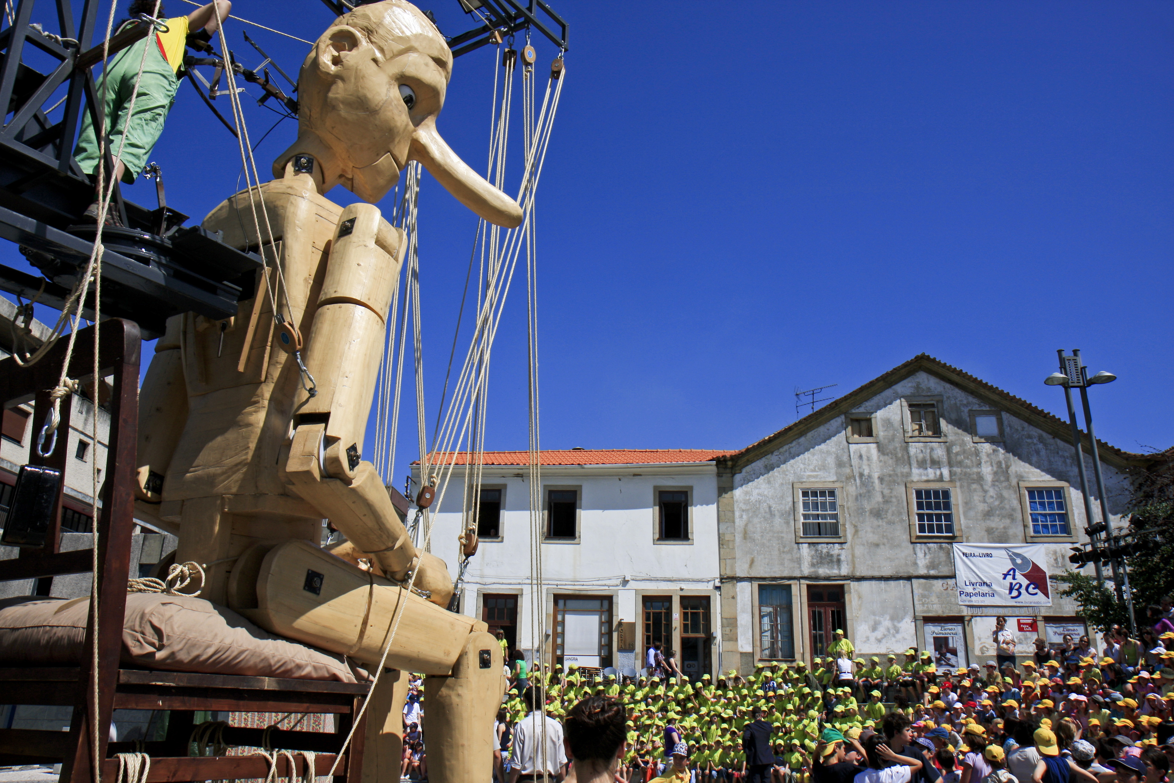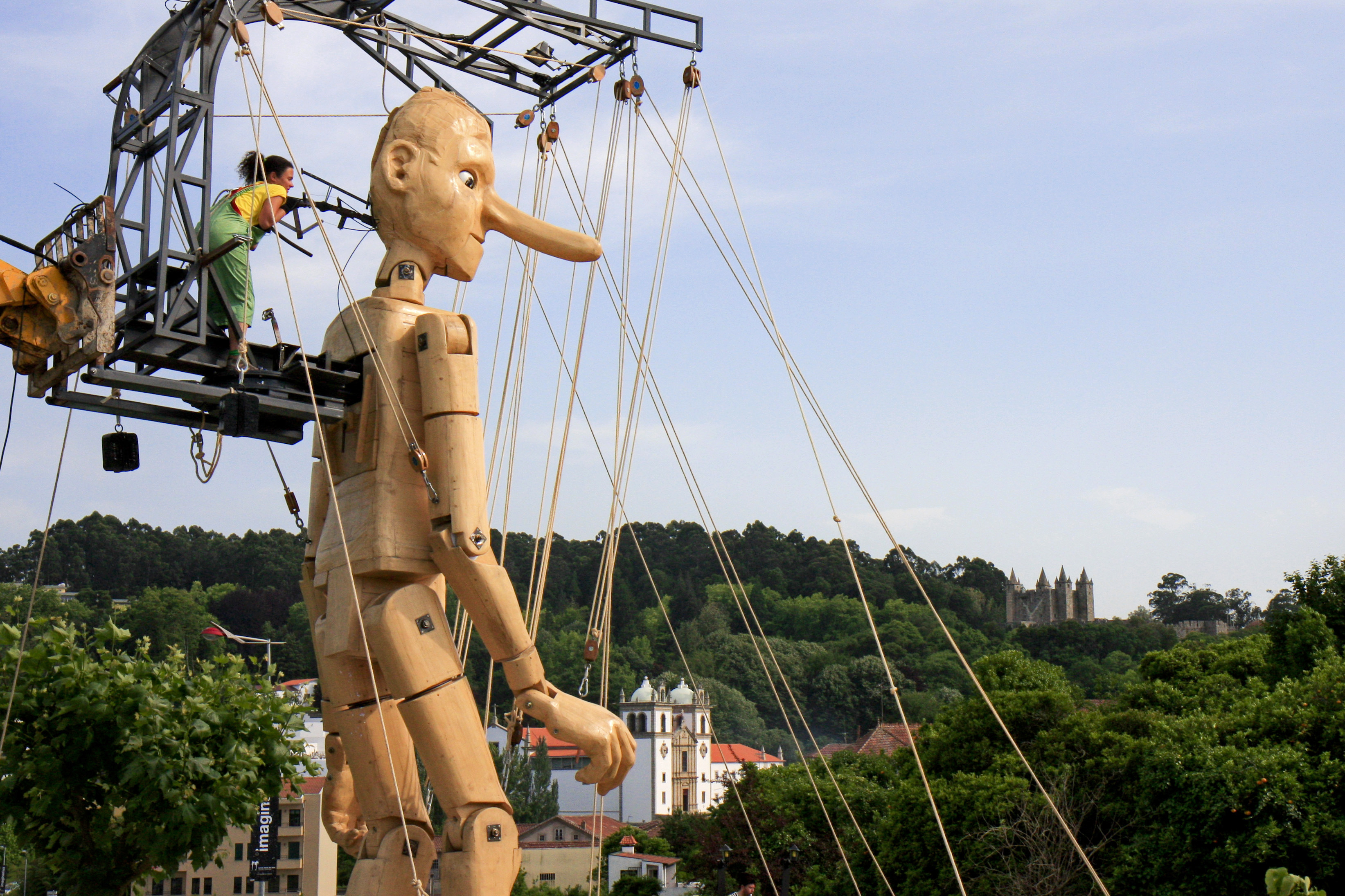 Depois de agigantar dois brinquedos tradicionais de madeira (o ciclista e o passarinho), o TRIGO LIMPO teatro ACERT apresenta outra criação, em co-produção com o Centro de Criação para o Teatro e Artes de Rua/Festival Imaginarius, de Santa Maria da Feira. Trata-se de um engenho cénico de madeira, com sete metros de altura, centrado na figura do Pinóquio.
