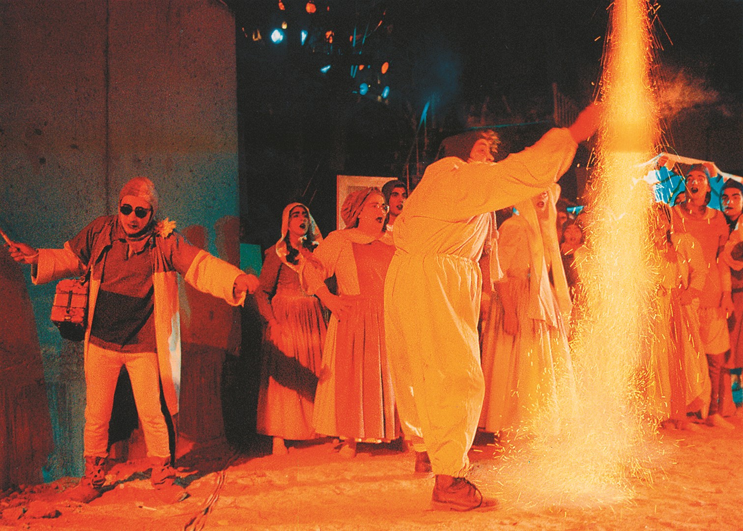 Nesta produção, o estudo de implantação cenográfica revelava-se um elemento fundamental, em que se procurava que o público mantivesse sensações de forte impacto visual, e que a poética musical e a relação dos actores com as diferentes zonas de representação salientassem o sentido fantástico do texto.