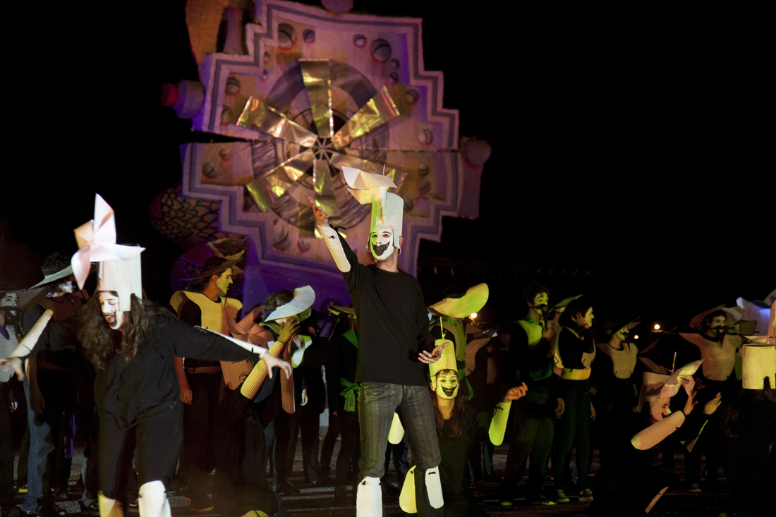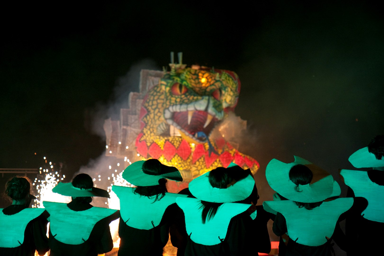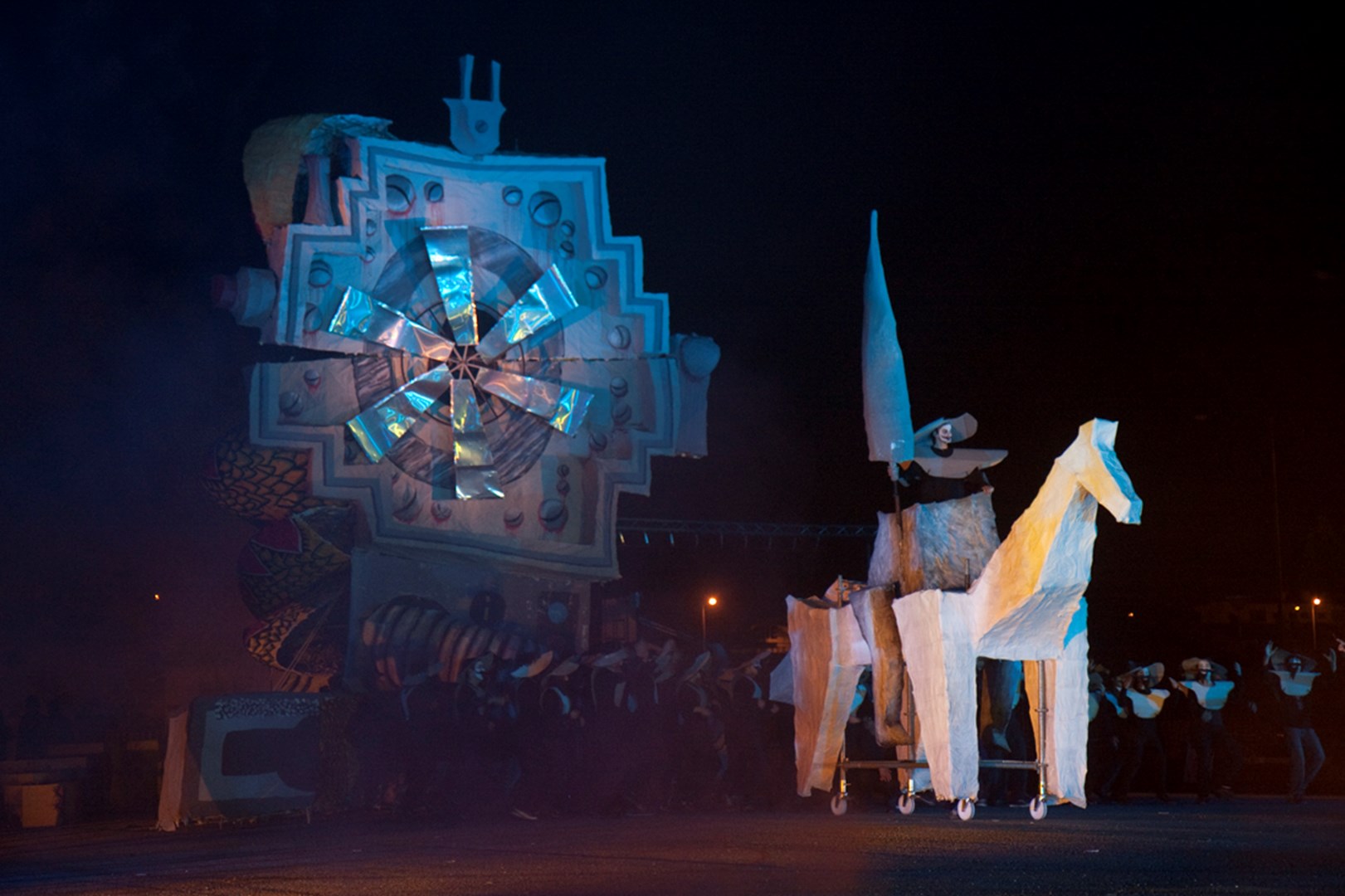 Actores, músicos, dançarinos, pirotécnicos, técnicos e escultores erguem o espectáculo nos bastidores. Nas diferentes áreas artísticas, grupos de trabalho constroem um edifício que, embora arda fisicamente, perdura na memória de quem actua e assiste.