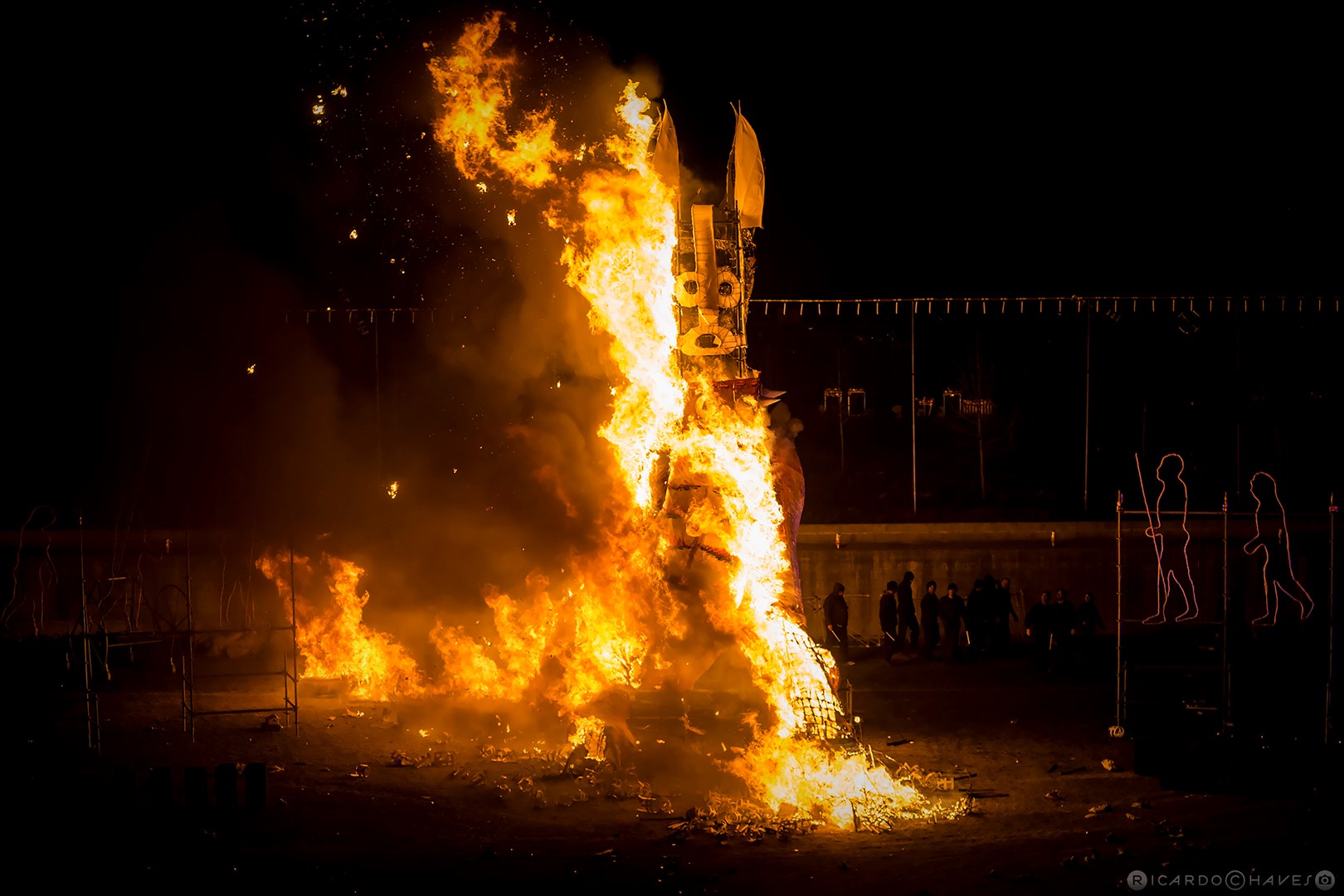 O segundo (a queima) é o momento que junta as duas centenas de construtores/criadores/participantes aos milhares de pessoas que vêm assistir (participando também) a esta celebração de raiz ancestral que se renova para, através da ironia, criticar os “males” do ano anterior e assim nos lavar a alma, deixando-nos limpos por mais um ano.