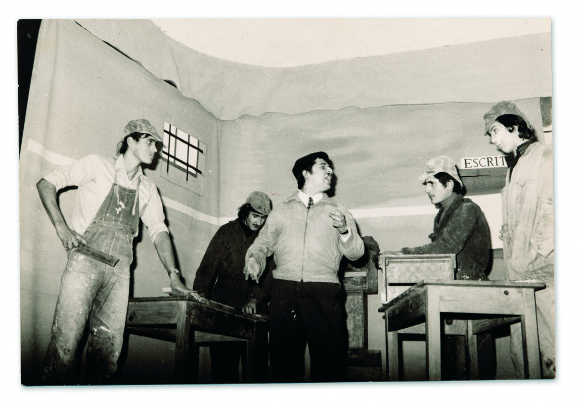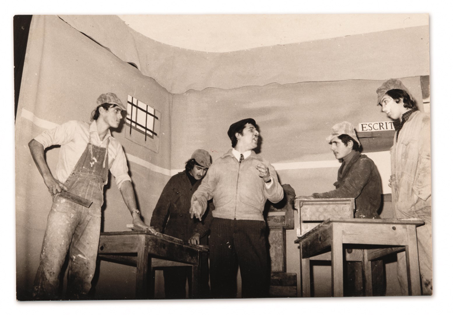 O primeiro espectáculo, “O Povo Acordou”, escrito colectivamente, limitou-se a projectar num texto as realidades de que cada um tinha conhecimento, e que se tornava urgente denunciar. As sessões decorriam como um comité de bairro, discutindo os problemas que a todos afligiam. Distribuíam-se personagens segundo a fisionomia e a proximidade real com o papel. O cenário era dividido - de um lado o campo, do