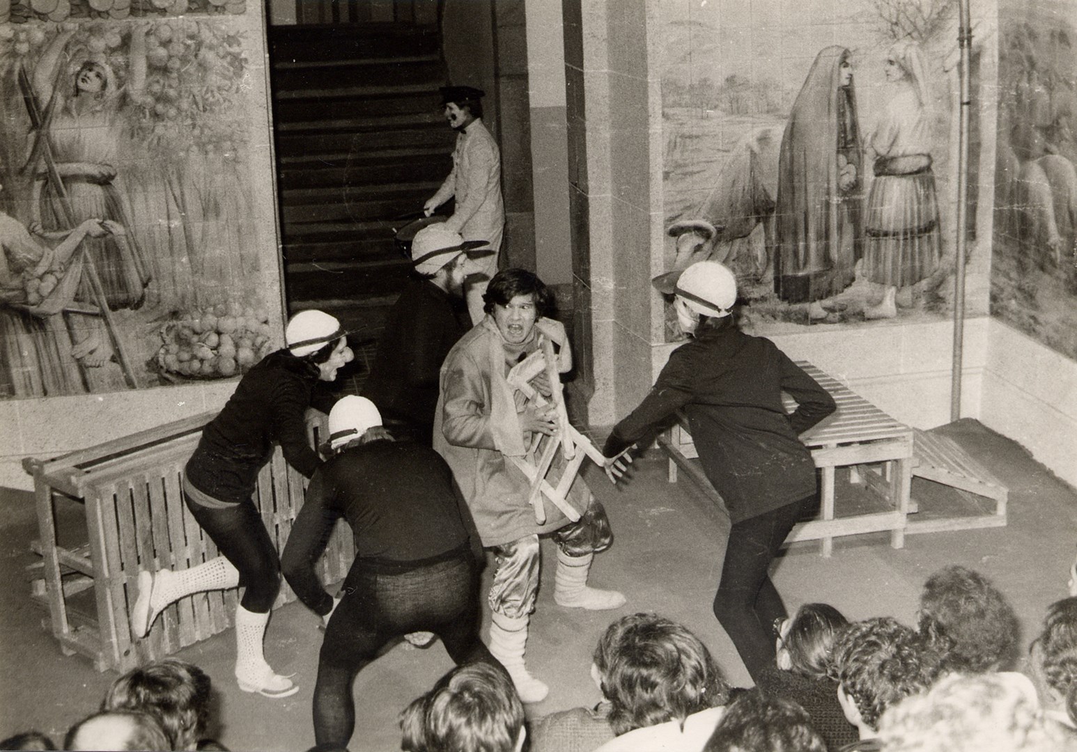 Espectáculo criado na utilização de um dos espaços arquitectónicos mais bonitos de Tondela— o Zagão da Câmara. A cenografia de Wladimir Franklin, associada a uma implanta- ção cénica com fortes potencialidades teatrais, criam novos desafios cénicos para os actores, e ampliam o campo experimental da montagem teatral. A dramaturgia decorre numa sucessão de jogos dramáticos em que o ritmo das ce- nas adquire já formas de expressão teatral de grande efeito. Este espectáculo representa um marco, em termos do estudo funcional dos elementos cénicos.
