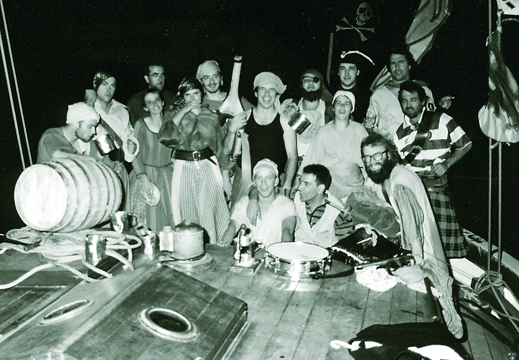 A primeira acção consiste numa visita ao barco pirata, para um primeiro contacto com a embarcação e em que serão distribuídos vários adereços tipicamente piratas. Depois de iniciados os aspirantes a piratas transformam-se em legítimos membros da tripulação, provando a sua fidelidade através da entoação de um hino pirata.